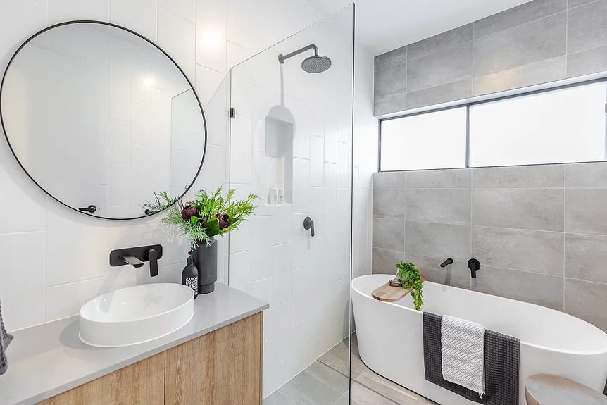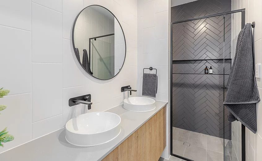 - Floor to ceiling tiles and stone bench tops to bathrooms